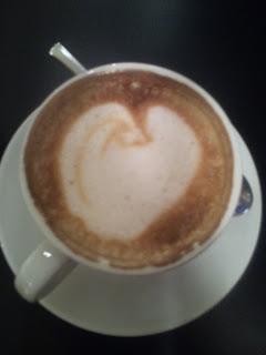 Och när jag fikade fick jag ett hjärta på min cappuccino, men den jag fikade med fick ett löv. Sign of the day. Nu ska jag till min pappa som fyller 79 år.