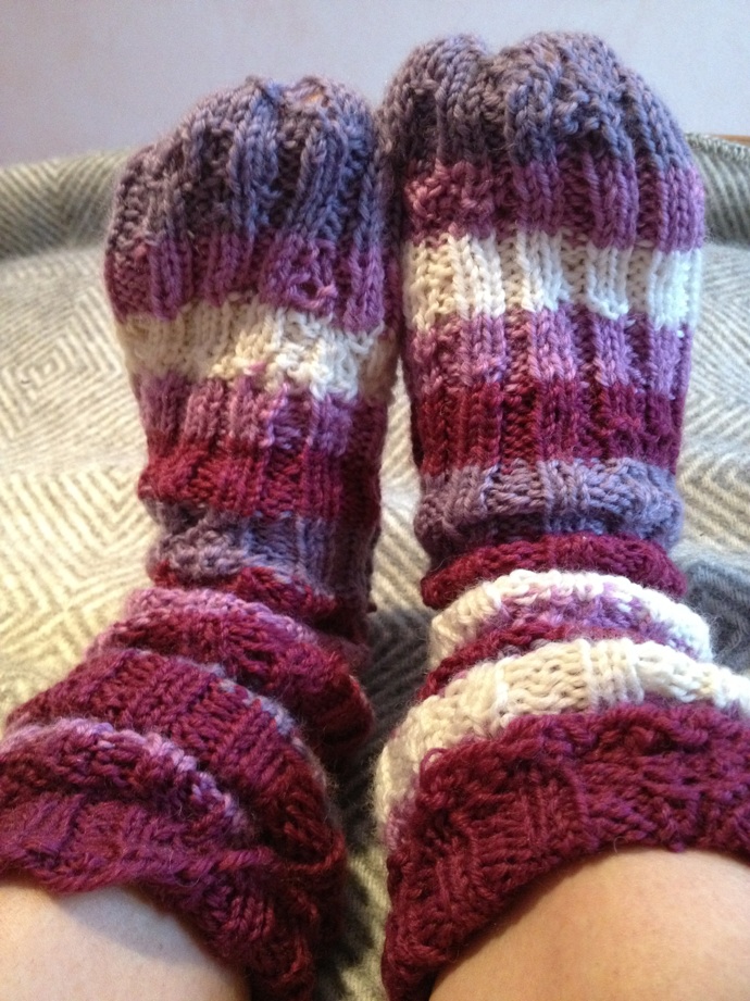 Och i morse kom en sköterska med en kasse fina hemstickade socor. Det visade sig att det är syster Märta som stickar till oss sjuklingar här på Vidarkliniken. Syster Märta är en legend här i Järna. Hon har skrivit många fina böcker. Nu är hon så gammal och ser dåligt, men jag blev så där tårögt glad av tanken på att hon sitter i nåt litet hus här i Järna och stickar sockor till oss. Och att hon vill att sköterskan ska hälsa att de är gjorda med kärlek. Så fint. Liksom Järna i ett nötskal.