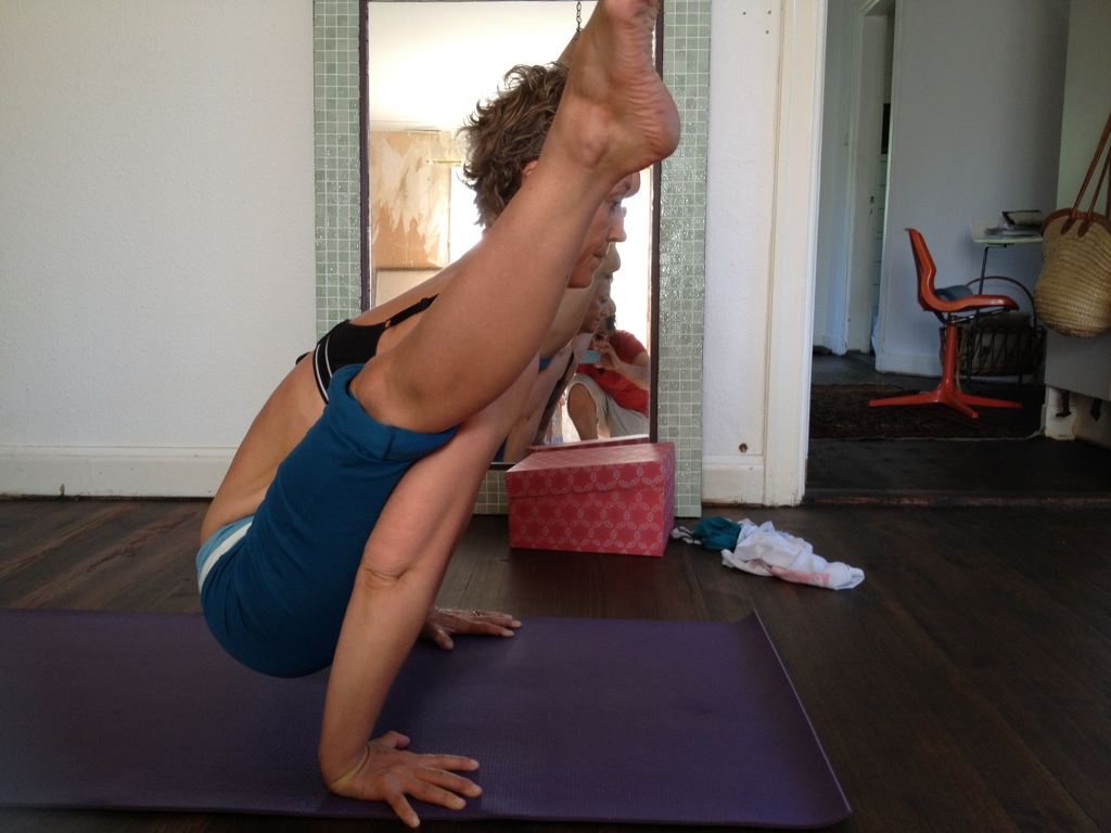 Här kommer lite ostajlade bilder på mig när jag gör min morgonyoga i ett småstökigt sovrum. (Jag och Ray rev ju ner alla tapeter för några veckor sedan och det är meningen att rummet ska målas om.)