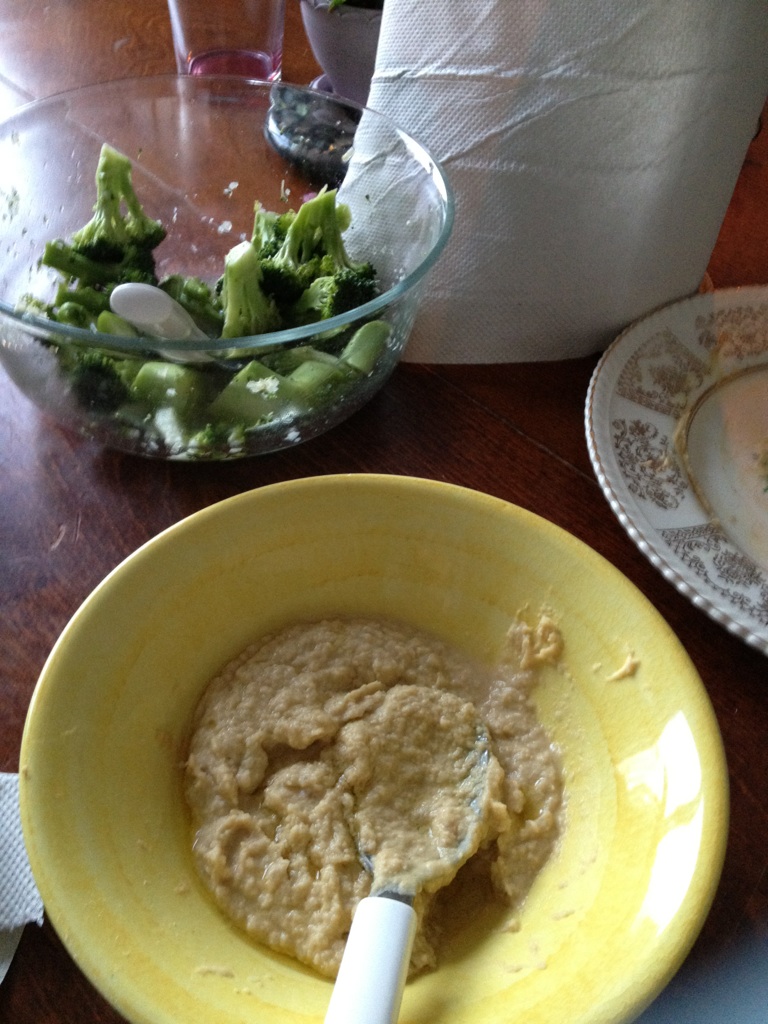 Middag: Rotsaker i ugn, soyabullar med grönkål och spenat. Hommous och broccoli.