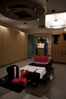 Man strålas på framsidan där bröstet var, men också i armhålan och baksidan av bröstkorgen, så där måste man också smörja.