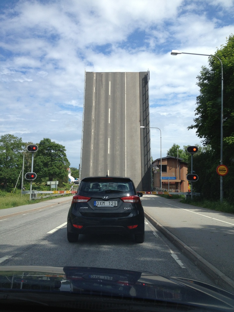 Idag åkte vi in till Älmsta för att lämna in gräsklipparen på lagning, klart vi hamnade i en broöppning